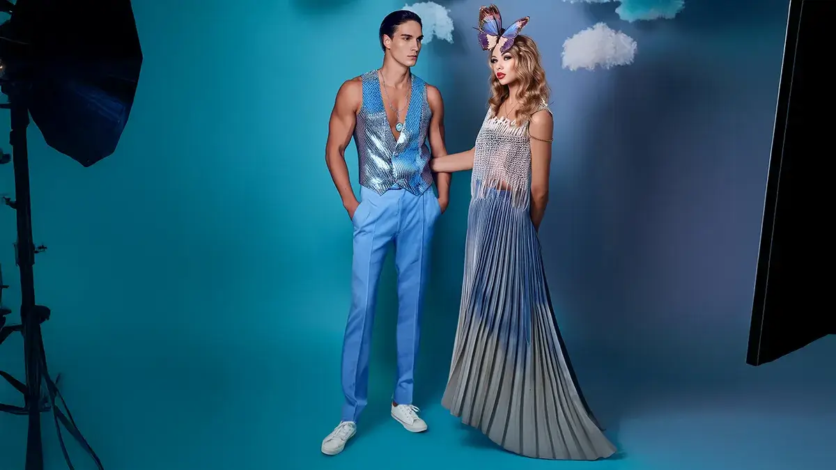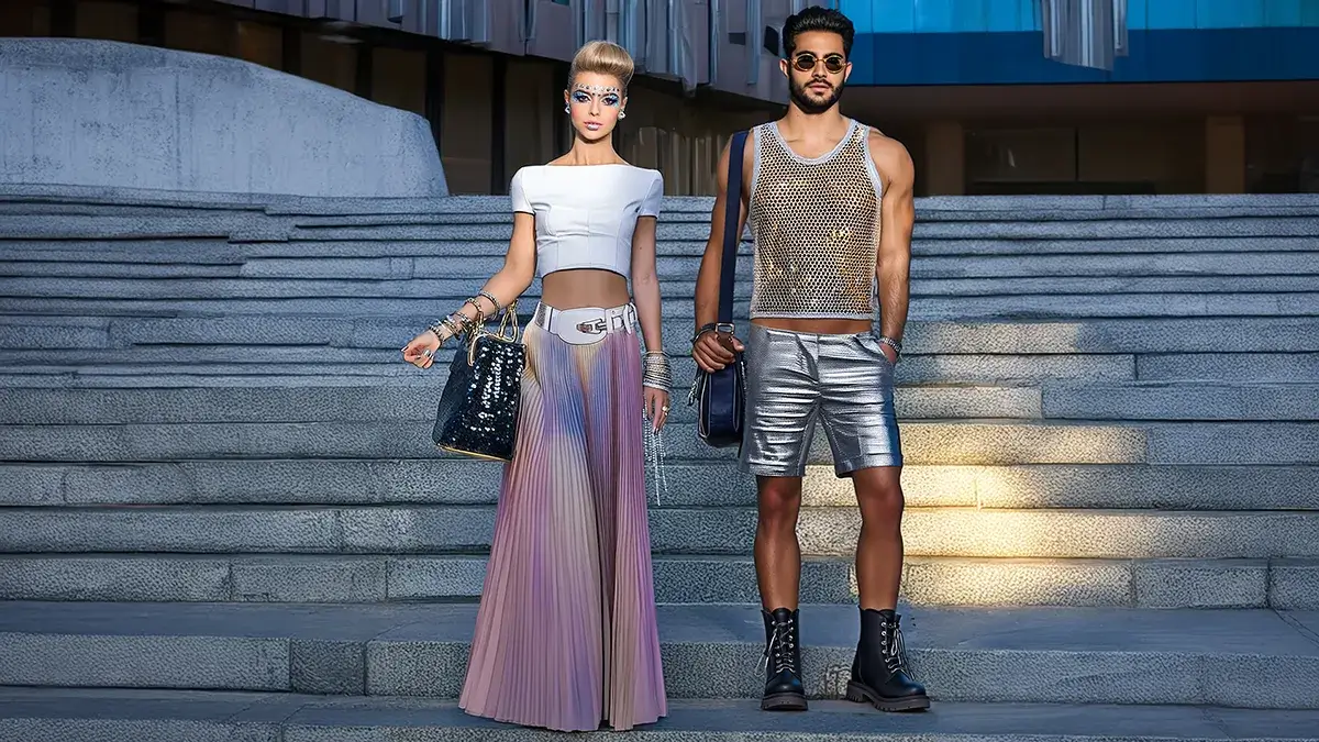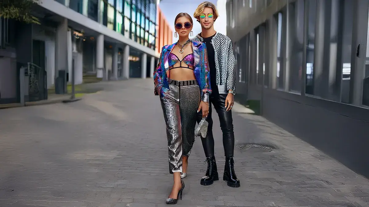 Metallic and holographic fabrics: Incorporate materials that reflect light and create a sense of movement and transformation.