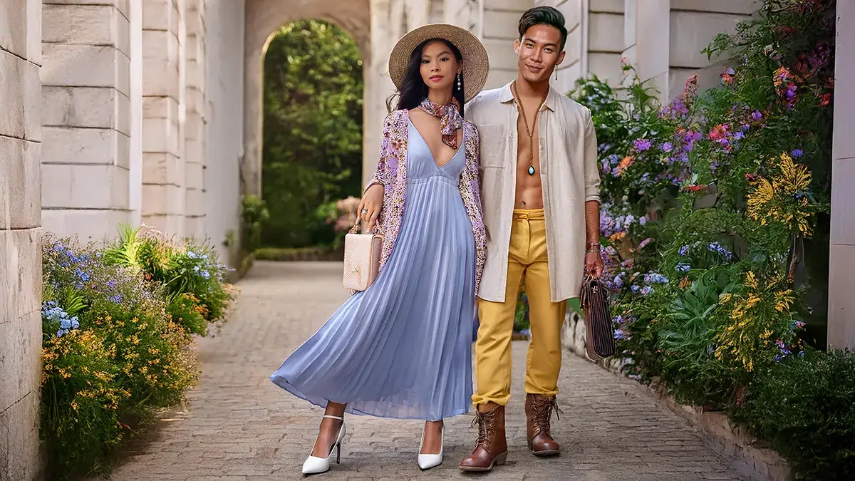 Soft, flowing fabrics: Use materials like chiffon, silk, and cotton to create a sense of movement and ease.