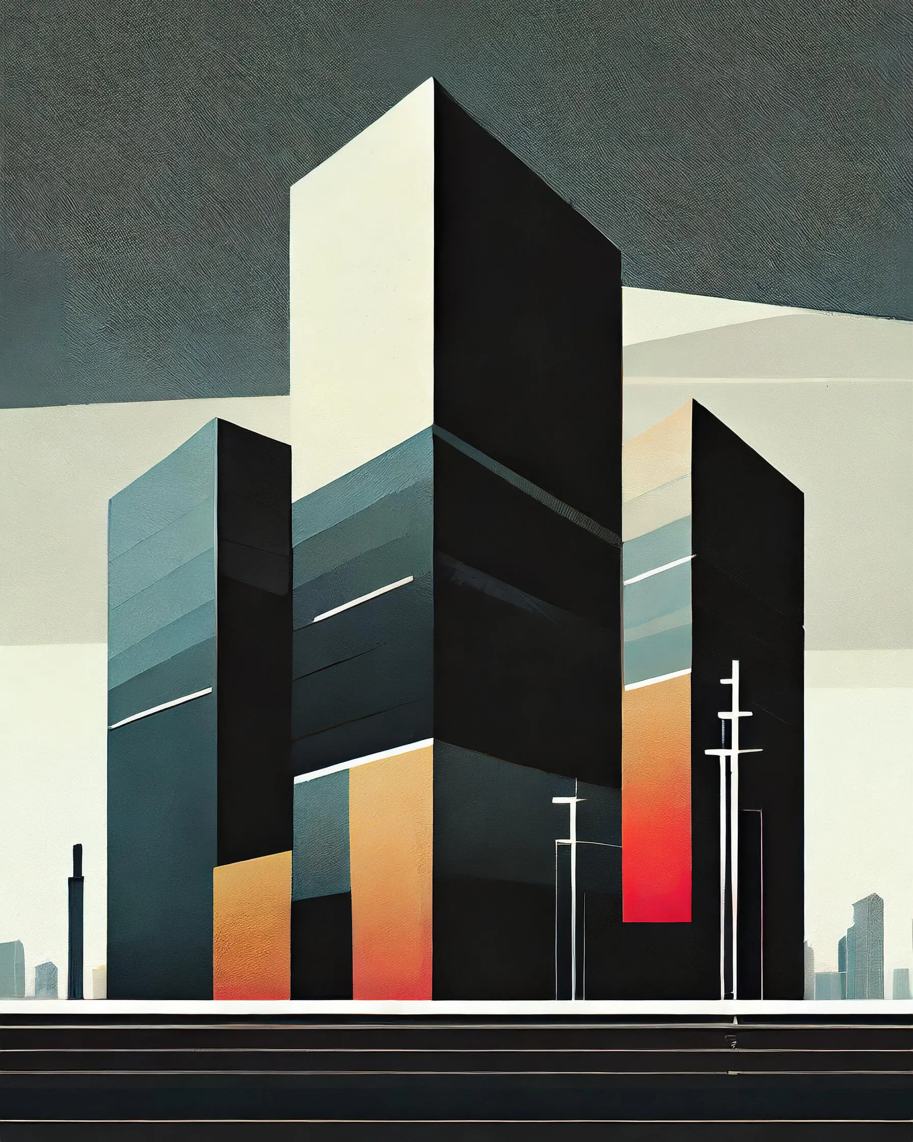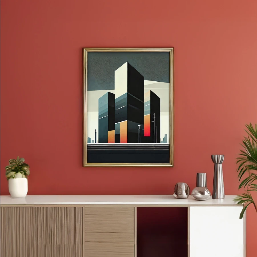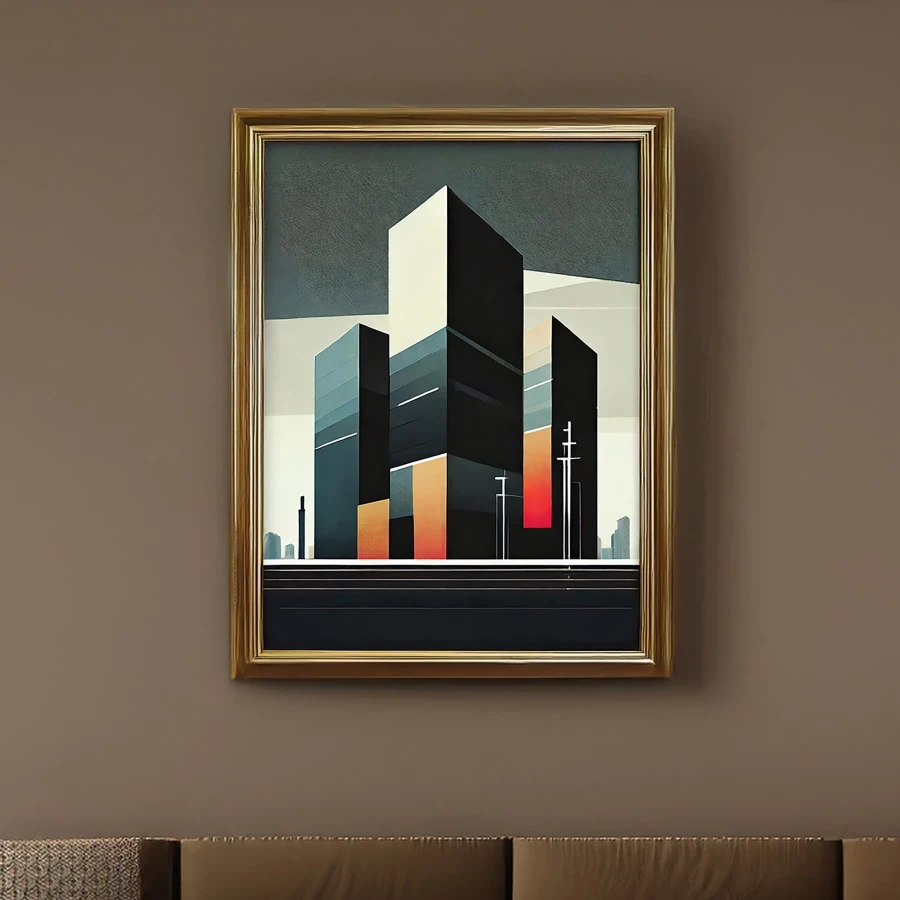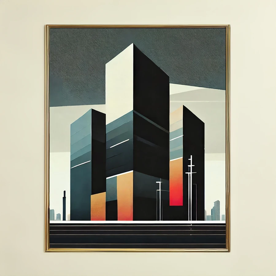 Monolithic concrete towers pierce an ashen sky like the teeth of some slumbering brutalist beast, their harsh geometries casting long shadows across the minimalist cityscape. The retro-futuristic composition merges Soviet-era architectural muscle with Blade Runner's neon despair, creating a deliciously dystopian vision that's simultaneously oppressive and oddly beautiful. Look, if your office walls aren't screaming "I might be living in a corporate nightmare but at least I have taste," then this piece is basically begging to fix that situation.