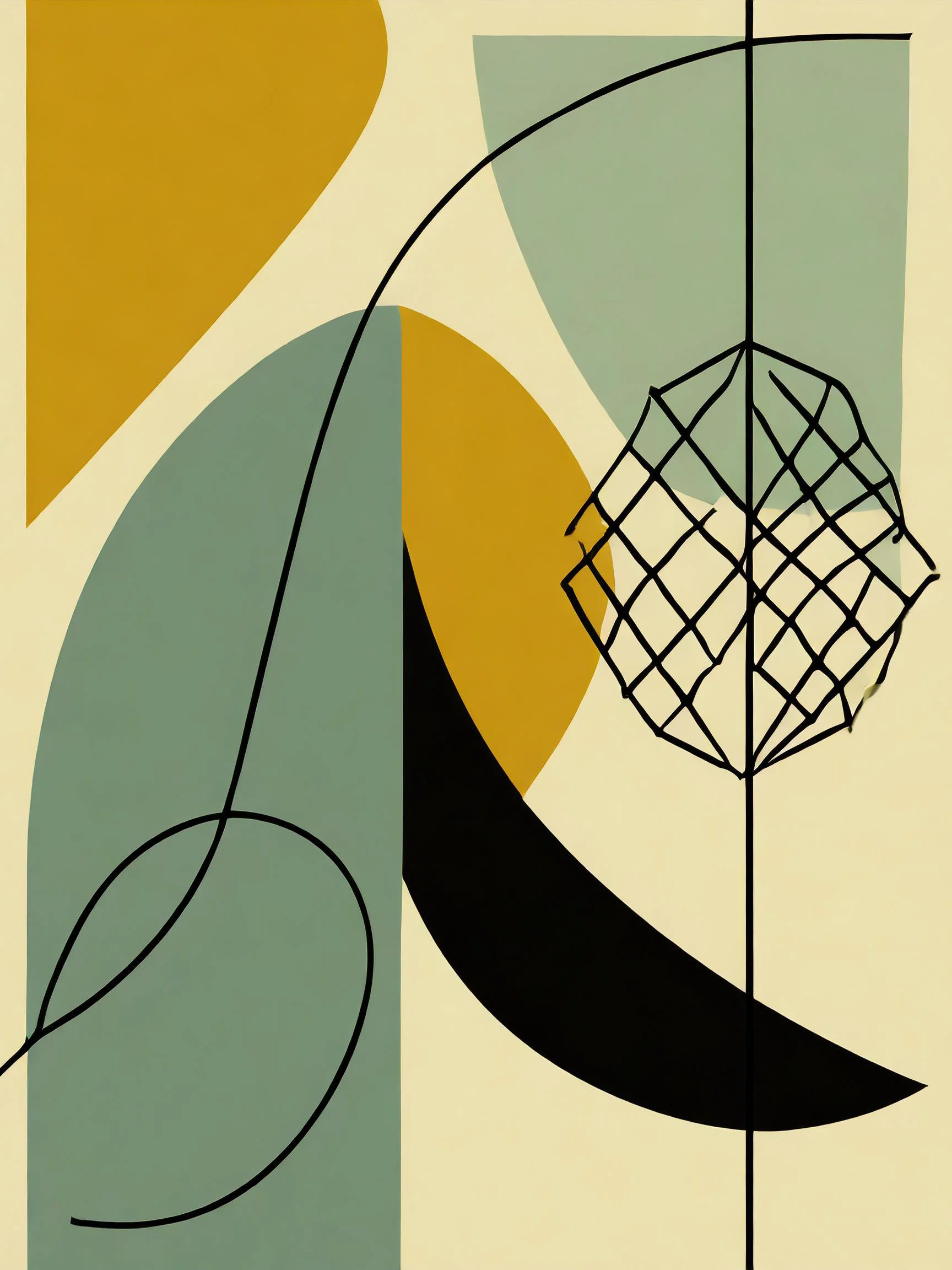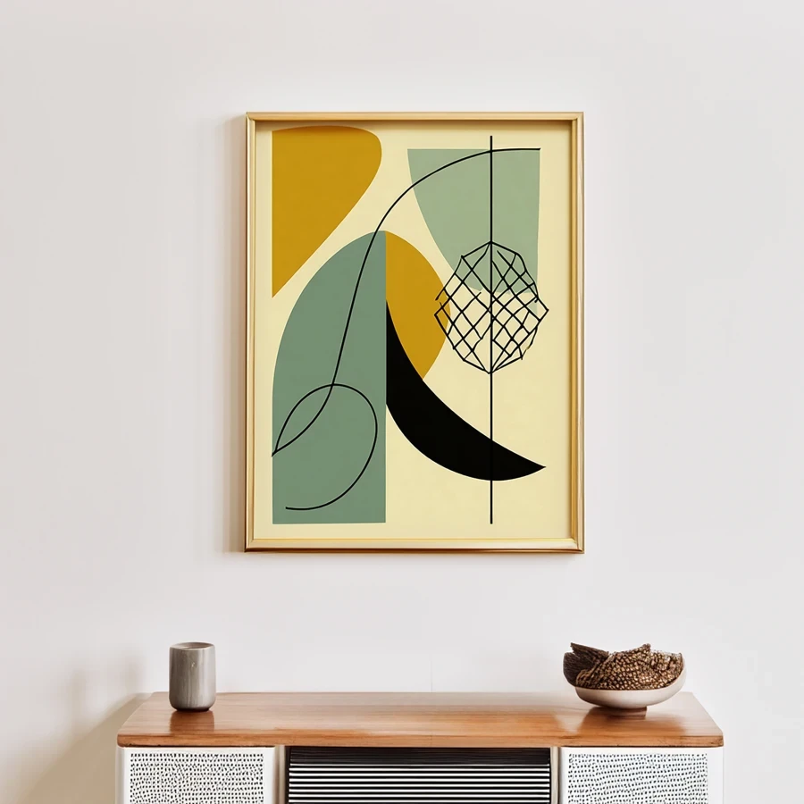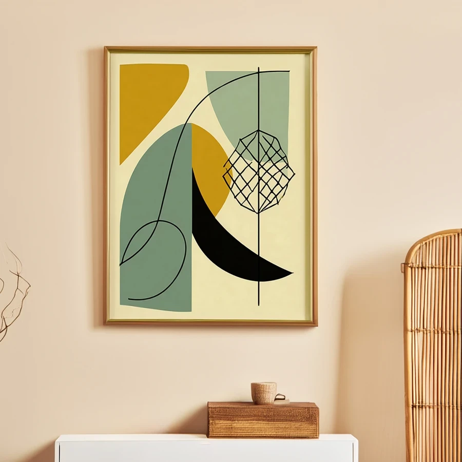Bold geometric shapes in muted sage and mustard dance across the canvas like tipsy butterflies at a mid-century cocktail party. The minimalist Scandinavian design channels pure Bauhaus energy, with clean lines and mathematical precision that would make your high school geometry teacher weep tears of joy. Listen, if you're trying to convince everyone you're a sophisticated adult who totally has their life together, this is definitely the kind of art you need hanging in your Pinterest-worthy space.
